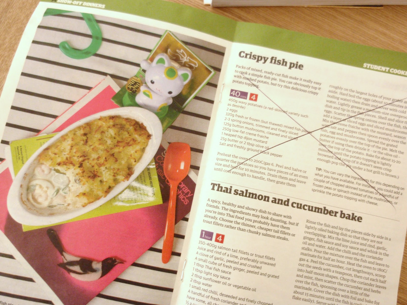 Most things from this book have been pretty good, but do not attempt to make this Crispy Fish Pie. In the recipe book, it is listed under the section labeled Show-Off Dinners. If your idea of showing off is making people sick (me) or making them feel like they have a brick in their stomach (hubby) then go right ahead. Oh and if you like your house to smell like a garbage bag full of last week’s cat food tins, this is also the recipe for you.